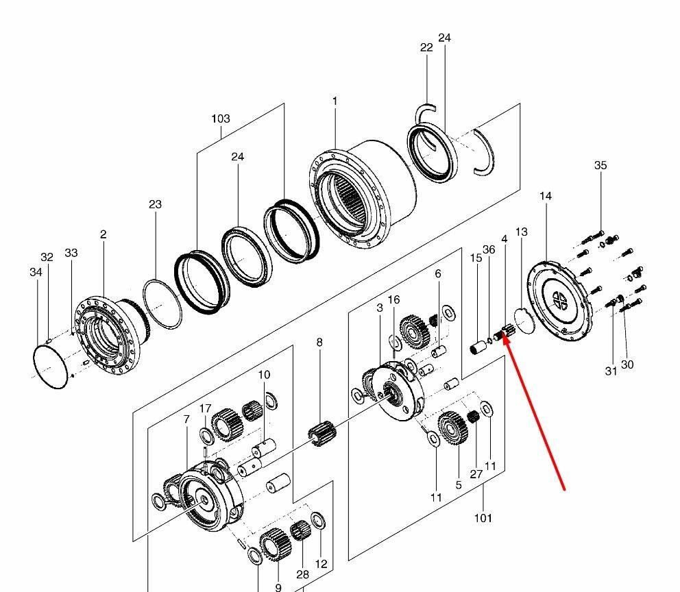 K9005372 Вал головної передачі DOOSAN DX140LC