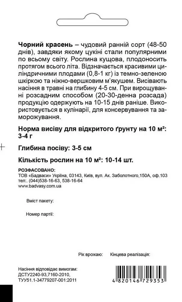 Відмінний ранній сорт (48-50 днів), завдяки якому цукіні стали популярними по всьому світу. Рослина кущова, плодоносить протягом всього літа. Відзначається красивими циліндричними плодами (0,8-1 кг) з темно-зеленою шкіркою і ніжно-вершковою м'якоттю. Висівають насіння в травні на глибину 4-5 см. При вирощуванні розсадним способом (20-30-денна розсада) продукцію отримують на 10-15 днів раніше. Використовується в кулінарії, для консервування і заморожування.