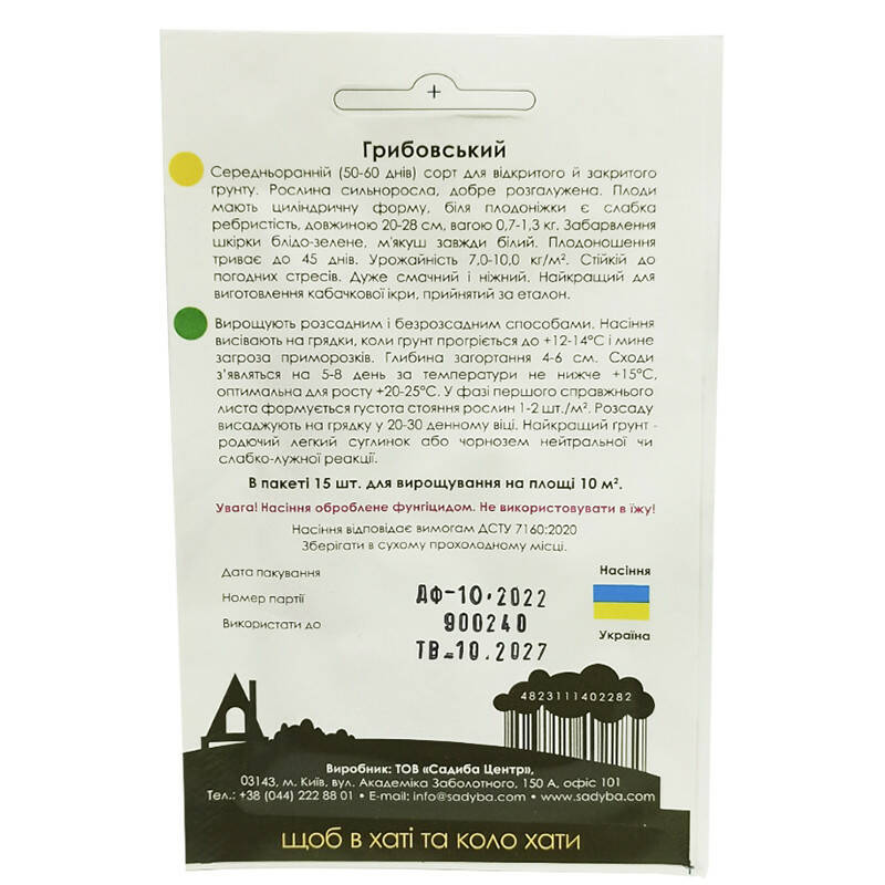 Кабачок Грибовський, 15 шт, Садиба Центр