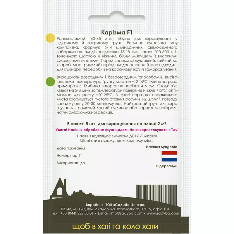 Кабачок Карізма F1, 5 шт, Садиба Центр