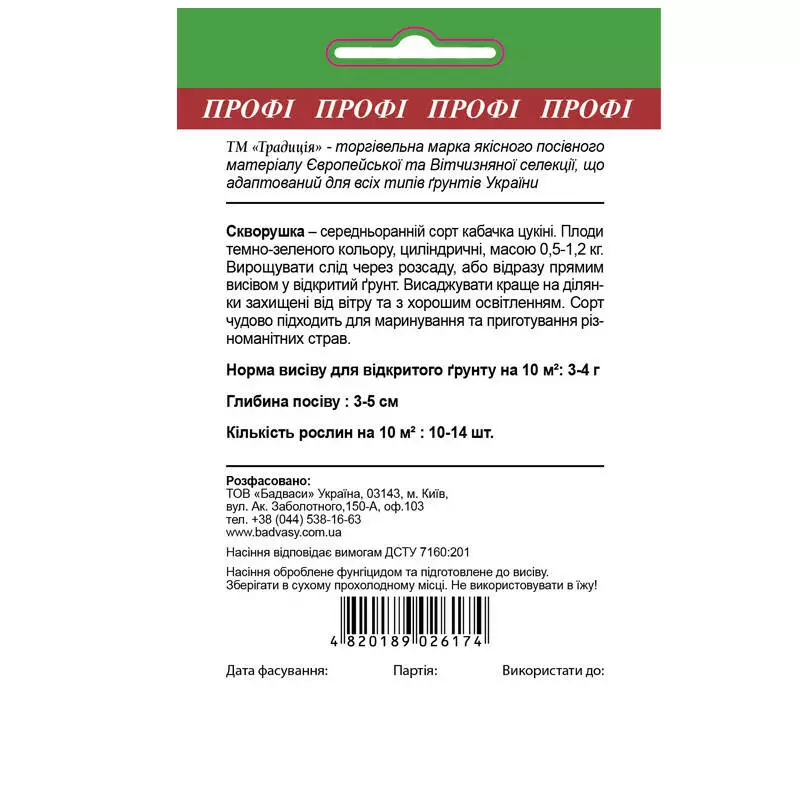 Кабачок Скворушка, 10 г, СЦ Традиція