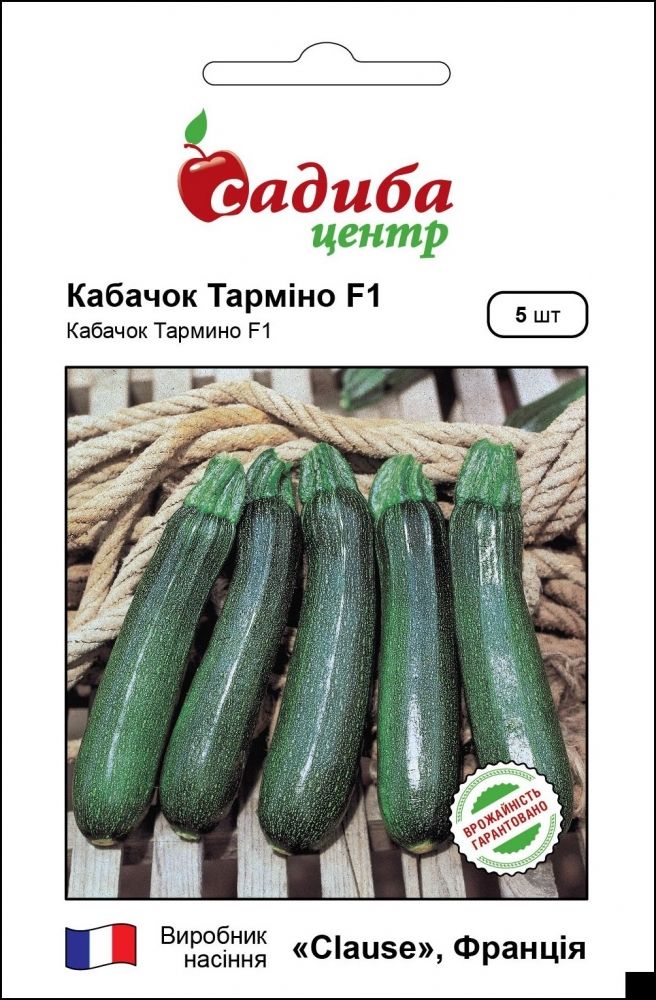 Тарміно - ранній гібрид кущового кабачка. Період вегетації — 40-45 днів. Рослина середньої сили росту, дуже продуктивна. Плоди циліндричні, блискучі темно-зеленого кольору, однорідні, легко знімаються з куща. Дуже смачний кабачок чудового товарного виду. Зберігає свіжість довгий час. Придатний як для свіжого ринку так і для переробки. Використовується для вирощування у відкритому грунті та тепличних умовах, як для отримання ранньовесняного продукту так і в основний сезон. Плодоносить довгий час і при цьому формує дуже високий врожай. Кабачки – це порівняно холодостійка культура, вимоглива до родючості грунту. Крім того, кабачки є дієтичними продуктами харчування. В них міститься велика кількість білків, вуглеводів, вітамінів. М’якоть має жовчогінну та сечогінну дію. Кращими попередниками для кабачків є картопля, горох, цукрова кукурудза, цибуля, капуста, морква. Кабачки можна вирощувати як через розсаду, так і прямим висівом у відкритий грунт.