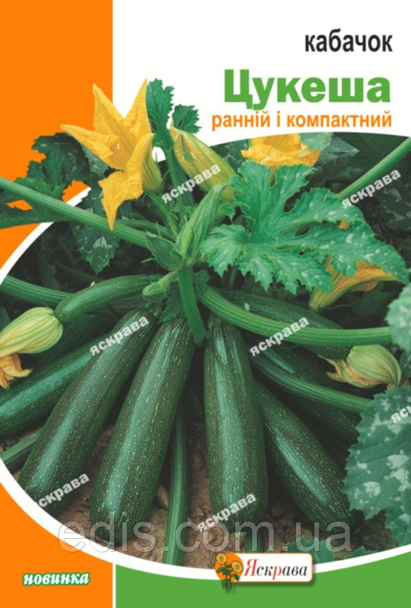 Кабачок Цукеша 20 гСкоростиглий, високоврожайний сорт. Вегетаційний період від сходів до початку плодоношення 40-45 днів. Кущ компактний, без бічних пагонів. Плоди циліндричної форми з гладкою поверхнею, темно-зелені з маленькими білими цяточками, довжиною 30-35 см, діаметром 12 см, масою близько 1 кг М'якоть біла, хрустка і ніжна. Використовують для соління, маринування та приготування кулінарних страв. Рекомендується для вирощування в плівкових теплицях.