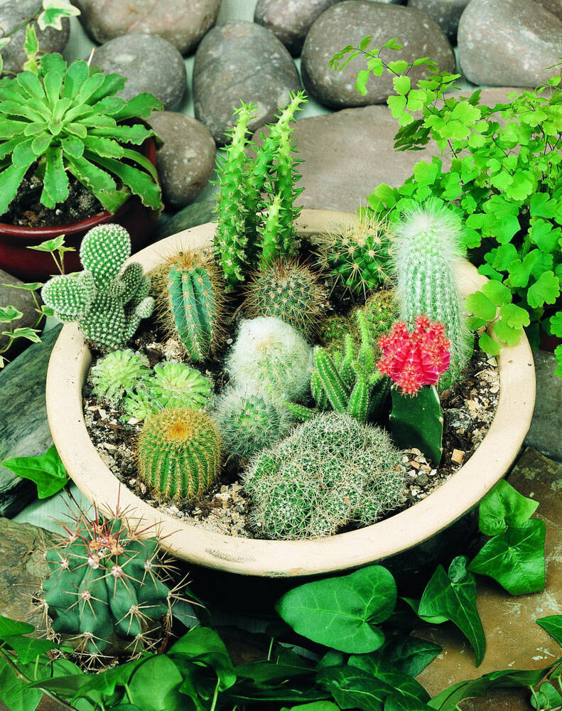 Кактус - суміш цікавих, надзвичайно красивих та невибагливих видів кактусів. Форма стебел, розмір і забарвлення колючок найрізноманітніші. Насіння висівають у лютому - травні. Плошку з насінням поміщають в целофановий пакет або накривають склом. Тримають при температурі +20-25 °С, затінюють від прямих сонячних променів. Сходи з'являються на 8-10 день. Пікірують сіянці, з грудкою землі, коли у них з'являються перші колючки. Кактус - невимоглива кімнатна культура, буде чудово виглядати на підвіконнях.