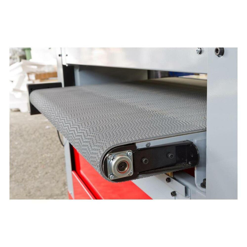 Станок прошел европейскую сертификацию СЕ 2 шлифовальных вала для чернового и чистового шлифования за один проход Профессиональный шлифовальный станок с шириной шлифования 970 мм Качественная подающая лента с долгим сроком службы Динамически сбалансированный шлифовальный вал гарантирует плавность хода Высокоэффективная производительность шлифования Бесступенчатая регулировка скорость подачи Лёгкая регулировка подающей ленты Управление работой шлифовального вала с помощью электромагнитного выключателя Управление подающей лентой с помощью кнопочного переключателя Простота смены шлифовальной ленты Может работать от сети под напряжением 230 В и 400 В Подходит для твёрдых и мягких пород древесины Быстрая и лёгкая установка подающей ленты в параллельное положение.