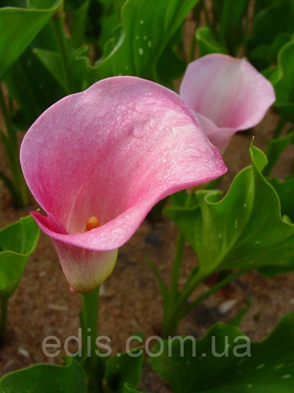 Калла Slow Посадка калл цибулинами — це найбільш простий спосіб швидко отримати гарне квітуче рослина. Воліють кали відкриті просторі ділянки та родючі ґрунти, але бажано затінювати їх в найгарячіші денні години. Грунт повинна бути кисла або хоча б слабокисла, потрібен хороший дренаж, тому що застій води в коренях згубний для рослини. Висаджують садові кали на початку травня. Попередньо посадковий матеріал витримують півгодини в розчині марганцівки. Потім бульби занурюють у підготовлені лунки на глибину 5-10 см. на відстані 30-40 см. один від одного (в залежності від розміру цибулини), закопують, а місце посадки добре поливають. Привабливість цієї рослини для квітникарів не тільки в дуже великих ефектних листках і в незвичайній формі квітки, але і в тому, що вирощувати каллу можна як у саду, так і вдома, в горщику. Для цього використовують просторі контейнери або горщики: висотою до 60 см і шириною в радіусі 15-20 см. від точки росту рослини.