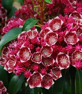 Це один із заворожуючих вічнозелених сортів кальмії. Його червоно-рожеві, всередині кілька темніші, з блідо-рожевими краями пелюсток квіти, формують суцвіття, на кожному пагоні яких формуються по кілька десятків штук. У період масового цвітіння створюють захоплююче видовище - багато квітучого куща. Листя темно-зелені, досить великі, блискучі, еліптичної форми. Грунти воліє з низьким показником кислотності, вологі, добре дреновані. Відмінно виглядає в поєднанні з ялівцями, ялинами і туями. Відмінний для кам'янистих садків, бордюрів, а також в якості солітера. Морозостійкий-34 С.