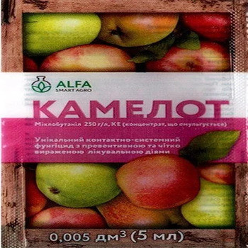 | Яблуня | Мучнева роса, парша | 0,18-0,22 | Обприскування в період вегетації | 30 | 3 |