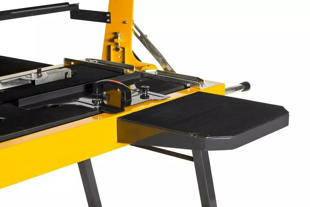 система водяного охлаждения включает резервуар на 32 л для мокрой распиловки, что снижает нагрев диска, образования пыли и продлевает эксплуатационный срок агрегата; наклон корпуса пилы регулируется в диапазоне от 0 до 45 град., что облегчает выполнение угловых работ; ножки съемные, это упрощает транспортировку и хранение во время простоя; асинхронный мотор не нуждается в постоянном техобслуживании, а система воздушного охлаждения предотвращает его перегрев; металлические поверхности обработаны антикоррозийным слоем.