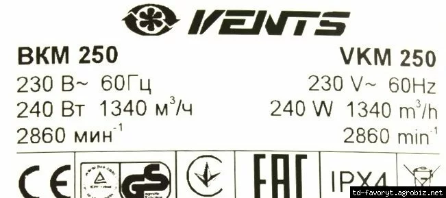 параметры вентилятора ВЕНТС ВКМ 250: