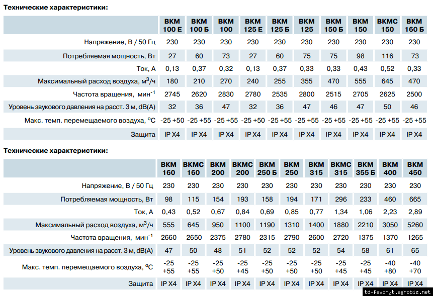 | Максимальная температура перемещаемого воздуха | -25...+50 °C |
