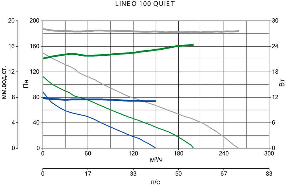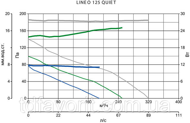 ∅ 125 мм, 190/250/320 м3/год, 78,5/98,1/137,3 Па, 11/24/27 Вт, таймер.