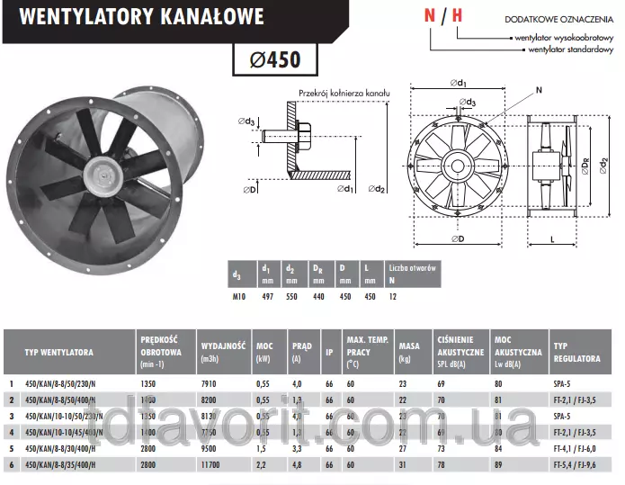 Стандартные осевые канальные вентиляторы Deltafan 450/KAN/10/10/50/230/N предназначены для монтажа в канале в любой позиции. Корпуса канальных вентиляторов изготовлены из высококачественной листовой стали, окрашенной порошком (Размеры круглых фланцев соответствуют норме PN-ISO 13351). Рабочие колёса вентиляторов изготовлены из литьевого полипропилена (PPG), усиленного стекловолокном (лопасти) и литьевым алюминием (втулка рабочего колеса).