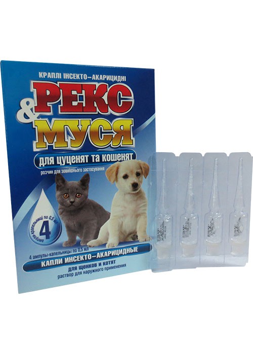 Краплі РЕКС і МУСЯ для кошенят і цуценят інсектоакар. №4 O.L.KAR *
