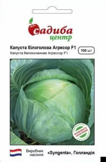 Агресор F1 - гібрид капусти для використання у свіжому вигляді, переробки та короткотривалого зберігання. Термін дозрівання 115-120 днів, середня вага качана 3-5 кг, зберігання до 5 місяців. Качан компактний, щільний з відмінною внутрішньою структурою. Не ушкоджується трипсом, стійкий до фузаріозу.