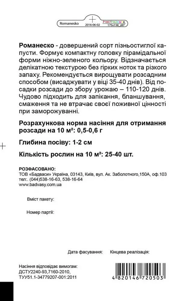 Довершений сорт пізньостиглої капусти. Формує компактну головку пірамідальної форми ніжно-зеленого кольору. Відзначається делікатною текстурою та кремовим смаком без гірких ноток та різкого запаху. Рекомендується вирощувати розсадним способом (висаджувати у віці 35-40 днів). Від посадки розсади до збору урожаю – 110-120 днів. Чудово підходить для запікання, бланшування, смаження і не втрачає своєї поживної цінності при заморожуванні.