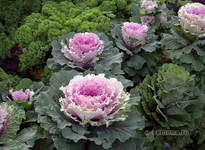 Семейство крестоцветные. Растение высотой до 60 см с бело-зелеными, темно-фиолетовыми, сиреневыми, сизыми гофрированными листьями. Светолюбива, холодостойка. Хорошо растет на плодородных почвах. Низкорослые формы используют для бордюров, более высокие- в групповых посадках. Листья широко применяются для украшения блюд.