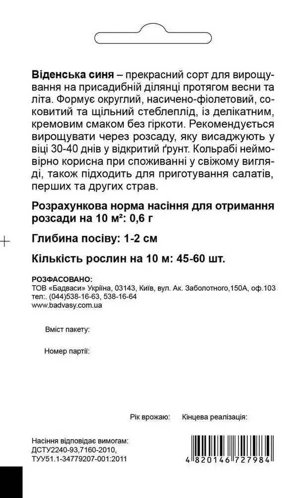 Капуста кольрабі Віденська синя, 0,5 г, Традиція