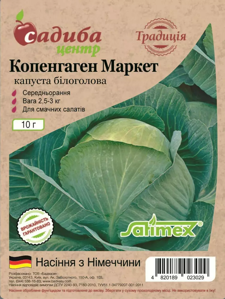Копенгаген маркет - відмінний, перевірений часом сорт. Головки формує щільні, світло - зеленого кольору, округлої форми. Сорт стійкий до розтріскування, довгий час зберігає товарний вигляд. Переваги – прекрасні смакові якості та стабільний урожай при мінімальних трудових затратах.