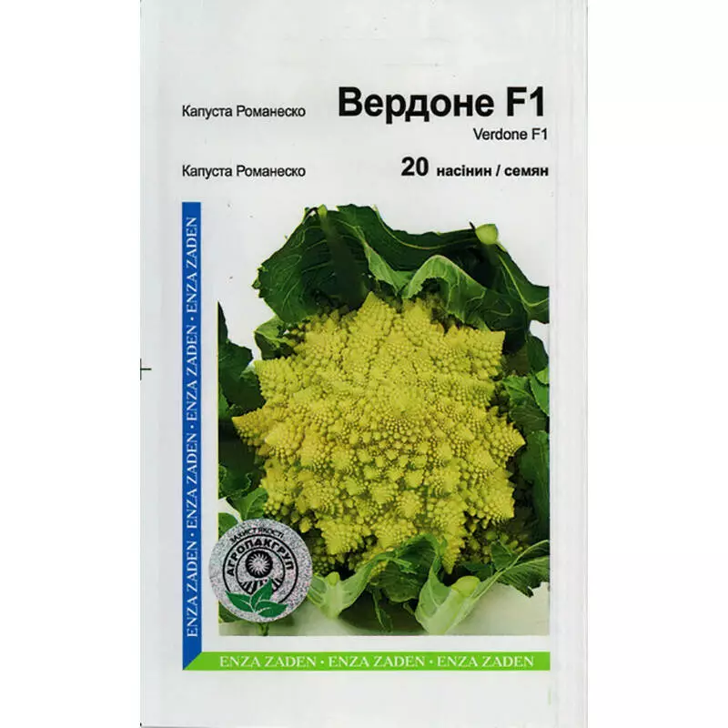 Капуста романеску Вердоне – це дуже пластичний гібрид капусти типу Романеско. Вегетаційний період – 85 днів. Рослина сильна, невибаглива у вирощуванні, легко пристосовується до різних умов, має потужний листовий апарат та кореневу систему. Формує конусоподібні, щільні та вирівняні формою головки привабливого світло-зеленого кольору, вагою 1,0-1,5 кг. Добре зберігає товарні якості у полі після дозрівання. Стійкий до стрілкування та фузаріозного в'янення. Придатний для реалізації як у свіжому вигляді, так і для заморожування.