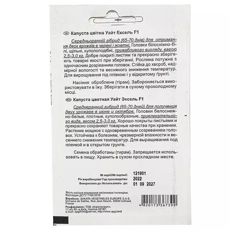 Капуста цвітна Уайт Ексель F1, 20 нас, Агропакгруп