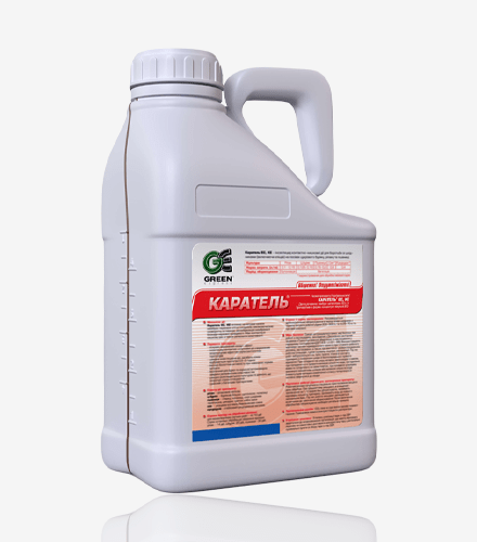 Назва товару: Каратель Короткий опис: Інсектицид Каратель — ефективний піретроїдний засіб для контролю шкідників у цукровому буряку, ріпаку та пшениці, у тому числі кліщів. Застосовується для дезінсекції зерносховищ та складських територій. Механізм дії: Інсектицид Каратель має контактно-кишкову дію. Активні речовини впливають на натрієві канали нервової системи шкідників, викликаючи їхню незворотну активацію, деполяризацію мембрани, і як наслідок, блокування нервової провідності. Це призводить до швидкої загибелі шкідників. Репелентні властивості препарату допомагають запобігти подальшому зараженню рослин, створюючи надійний бар'єр проти нових атак. Висока ефективність дії забезпечується завдяки сучасній формулі активних компонентів. Переваги: - Піретроїдний інсектицид контактно-кишкової дії з акарицидним ефектом. - Забезпечує швидку інсектицидну дію з нокаут-ефектом, має високу біологічну активність при невеликих нормах витрати й сумісний у бакових сумішах. Особливості застосування: - Не використовувати при температурі +25°C та вище. - Ефективний в баковій суміші з препаратами для контролю конкретних шкідників. - Чергувати з інсектицидами інших хімічних класів для запобігання резистентності. - Оптимально використовувати в ранкові або вечірні години при сухій погоді.