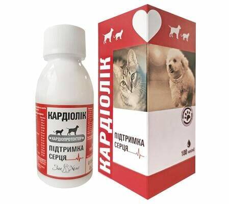 КАРДІОЛІК – суміш кормових добавок (рідкий премікс) для харчування серцевого м'яза собак і кішок з проблемами серцево-судинної системи, що страждають на кардіоміопатію (у тому числі дилятаційну кардіоміопатію) та ендокардіоз (регургітацію крові при недостатності мітрального клапана), вродженими.
