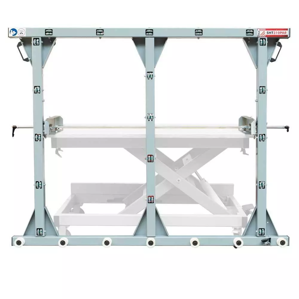Каркас для подъема плит Holzmann SHT310PAR заказать-купить в интернет-магазине KMA.UA. Доставка в любой город Украины.. ОсобенностиРамка для монтажа на панели, подходящая для нашего SHT310, для удобства работы с большими панелями Ролики на раме позволяют легко загружать и выгружать панели. Поворотный механизм рассчитан на управление одним человекомвключая пластинчатый стопорМаксимум. Ширина доски до 40 мм и макс. груза 100 кг с размером рамы 1850 x 1440 ммПростая и согласованная сборка и разборка на нашем SHT310