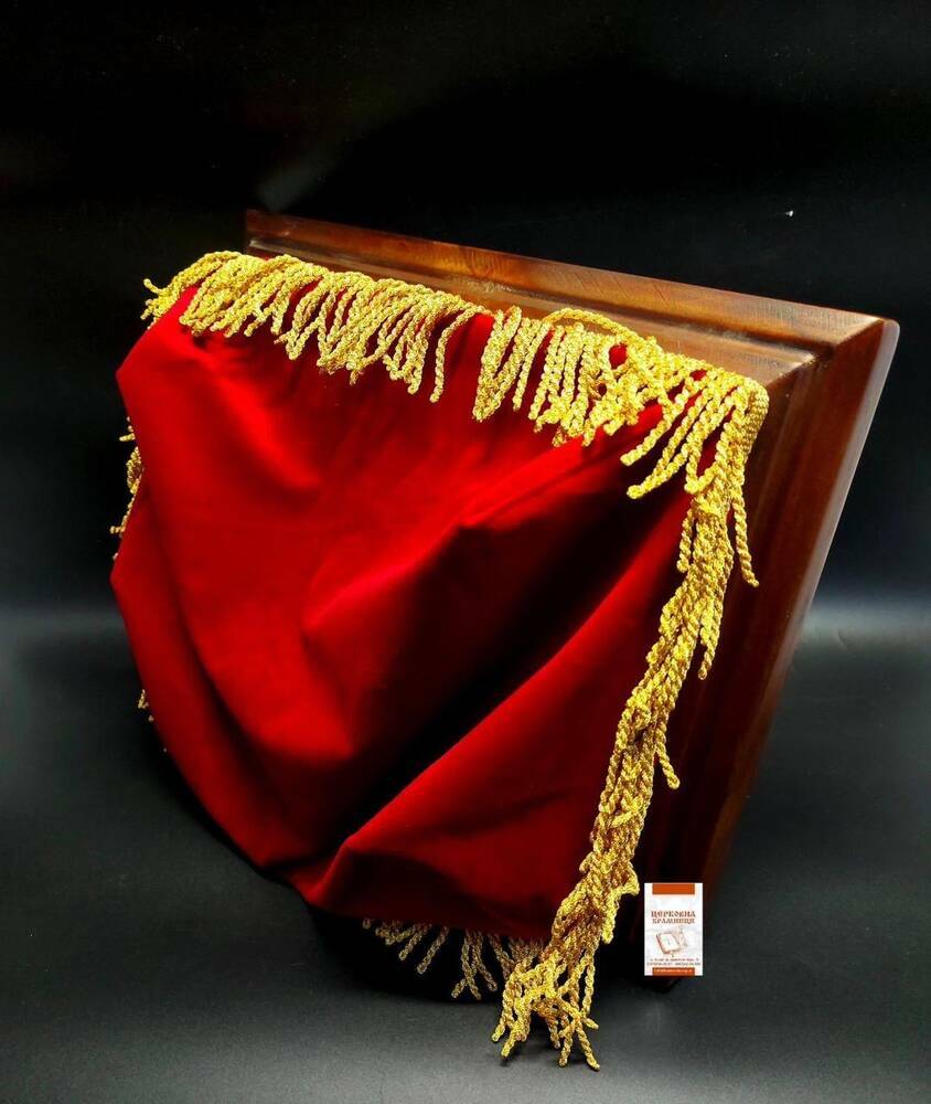 Карнавка (таця) для збирання грошей (дерево+тканина) червона