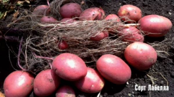 Корневая система хорошо развита. Куст дает до 14 крупных картофелин, количество нетоварной мелочи минимально. «Лабелла» отличается терпимостью к капризам погоды, не требует частых поливов