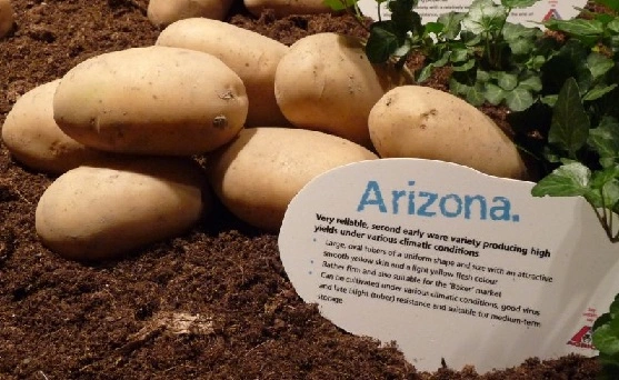 Аризона.  Высокоурожайный ранний сорт столового назначения, с большими, привлекательными клубнями, которые имеют хорошие вкусовые качества.            Надежно обеспечивает формирование высокого урожая в стрессовых условиях. Устойчив к высоким температурам воздуха и почвы во время вегетации. Клубни хорошо хранятся. Имеет высокую устойчивость к вирусным заболеваниям. Весьма чувствителен к метрибузину.