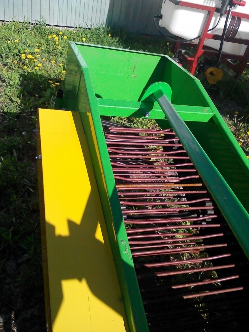Транспортерная картофелекопалка подключается к заднему валу отбора мощности трактора . Агрегатируется также и с мини-тракторами. Не требует специальных условий эксплуатации и проста в обслуживании.