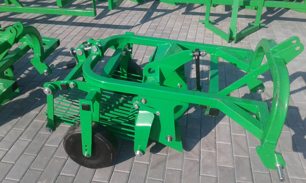 Картофелекопалка вибрационная 1 рядная Bomet – это навесное оборудование, которое используется при сборе урожая картофеля. Передний нож врезается в картофеленесущий ряд и поднимает землю с картофелем на копалку, на ней установлены прутья, через которые под вибрациями просыпается земля, и на поверхность высыпается картофель.