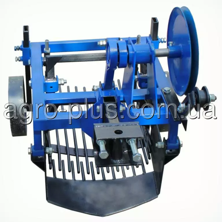 Благодаря наличию отдельного привода на активную лопату и на грохот за счет двух эксцентриков, создаются более плавные колебательные движения, позволяющие меньше повреждать выкопанный картофель и уменьшить передачу вибрации на мотоблок. Комплектуется с мотоблоками Zirka LX 1090 D (Zirka 61), Кентавр МБ 1070 D.