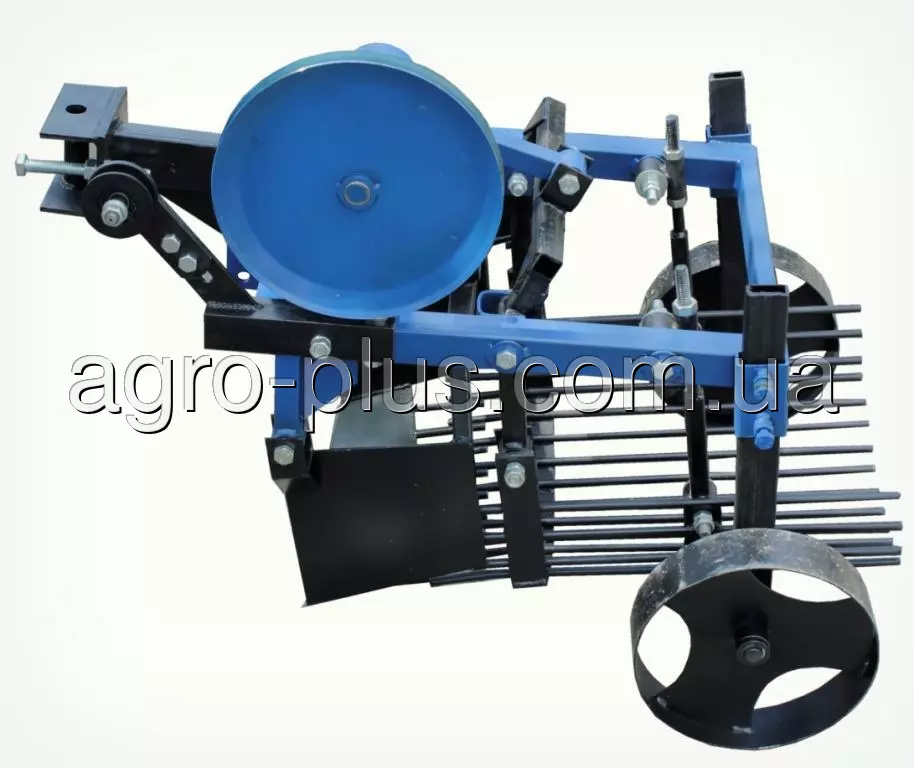 Агрегатируется с мотоблоками. Предназначен для выкапывания картофеля, отделения клубней от земли и укладки на поверхность, после чего остается только вручную собрать выкопанные клубни. Также возможно выкапывание лука, чеснока.