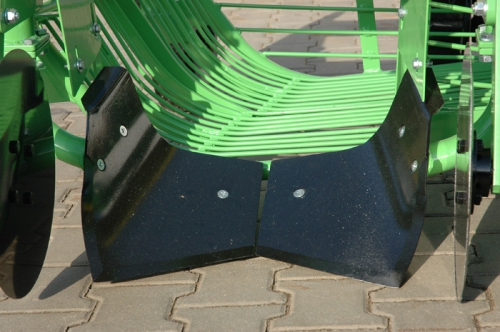 Два дисковых ножа отрезают стелющиеся побеги, двойной сошник подрезает гряды и переносит их нa вибрационный отсеиватель. Два движущиеся в противоположных направлениях отсеивателя удаляют землю и укладывают клубни в узкий ряд, набок, вдоль направления движения машины. Такая установка рабочих элементов, обеспечивает плавность работы машины и облегчает собирание клубнeй. Следует подчеркнуть, что конструкция копалки характеризуется очень низким показателем повреждения клубнeй.