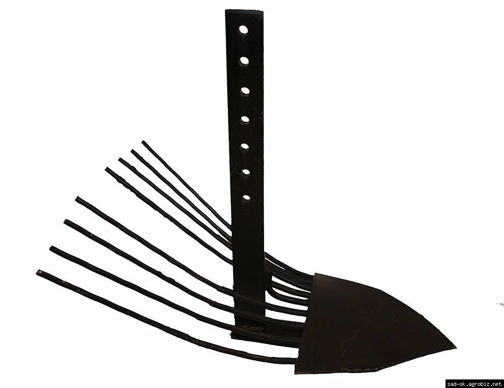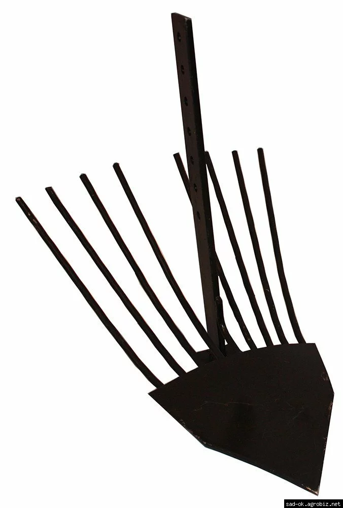 Картофелекопатель для мотоблока. Агрегатируется с мотоблоками при помощи сцепки. Прост в использовании, возможность регулировки глубины выкапывания.