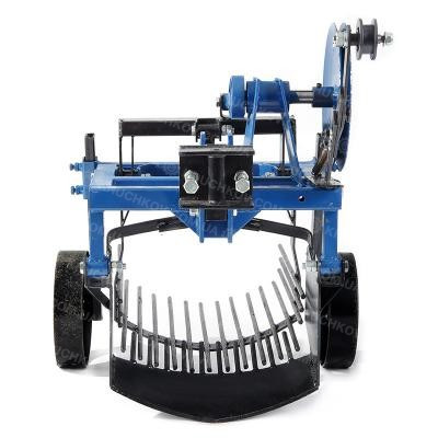 Принцип работыКартофелекопатель приводится в действие при помощи ременной передачи (ремень профиля «В»). Вращающий момент от шкива коробки передач мотоблока передается на шкив картофелекопателя. Шкив картофелекопателя крепится на вал, на противоположной стороне которого установлен эксцентрик с шатуном. Шатун в свою очередь передает вращение на грохот картофелекопателя и на нож. Выкопанный картофель попадает на грохот, где очищается от земли.