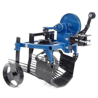 Регулировка глубины выкапывания осуществляется благодаря прицепному устройству и опорным колесам.