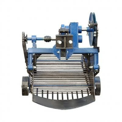 Ременная передача от шкива мотоблока до шкива картофелекопалки активизирует работу редуктора. Транспортер приводится в движение от редуктора через цепную передачу между звездочками. Нож активизируется от работы шатуна с эксцентриком, которые тоже запускает в действие редуктор. Нож подрезает почву с картофелем и подает на ленту. Двигаясь по ней, клубни отделяются от земли и падают на поверхность, а земля просыпается сквозь прутья.