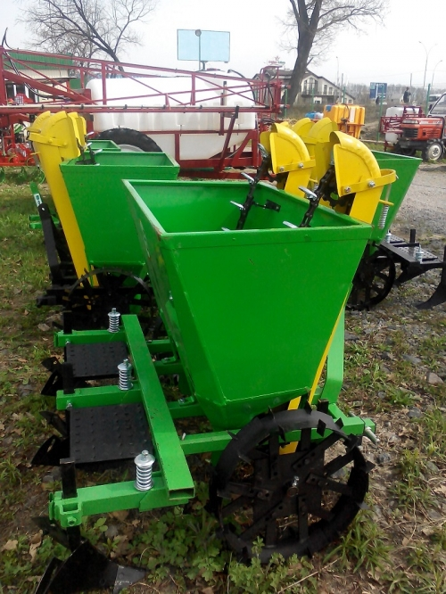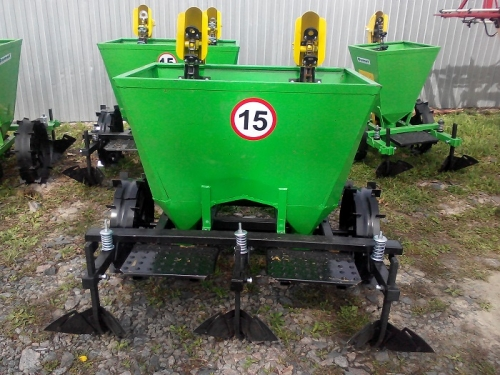 Двухрядная навесная сажалка для картофеля присоединяется к трактору при помощи заднего навесного устройства (ЗНУ). Сажалка взаимодействует с тракторами оснащёнными ЗНУ второй категории. Она выполняет все операци в одном рабочем цикле, связанным с высаживанием картофелей т.е. вспахивает борозды, автоматически высаживает картофель и окучивает землю, формируя гряды.