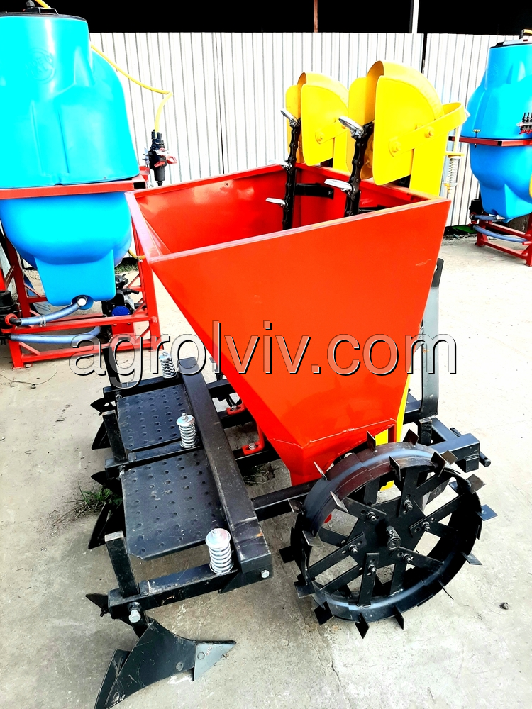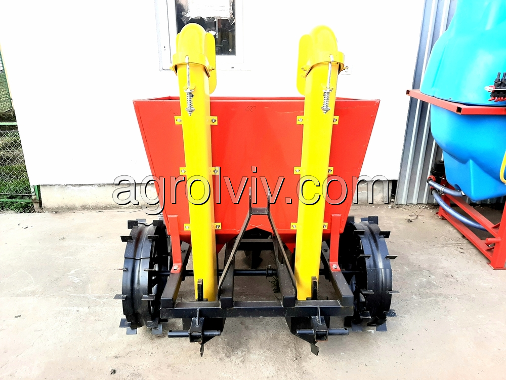 Саджалка картоплі дворядна на 50 см. має ширину міжряддя від 53 см. до 57 см. Використовується на міні тракторах які мають колісну базу до 1 м - 1,10 м.