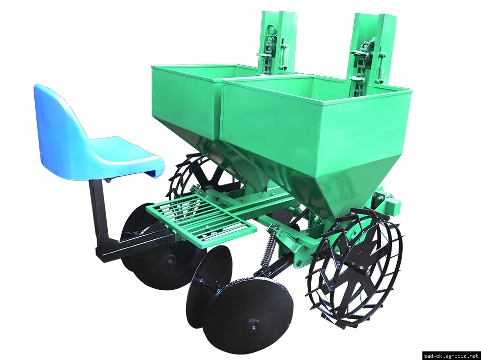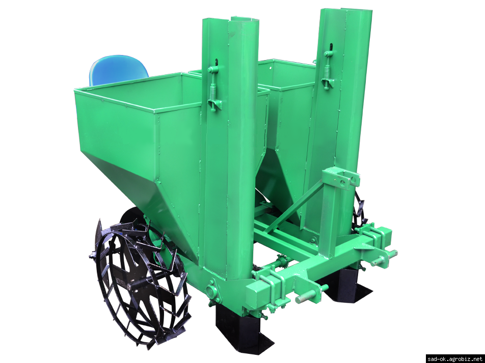 Картофелесажалка двухрядная проста в эксплуатации и регулировке и предназначена для посадки картофеля разных сортов. Есть возможность регулировки ширины междурядий.