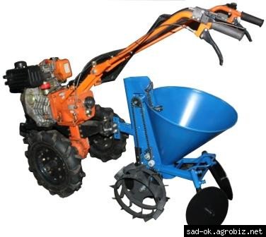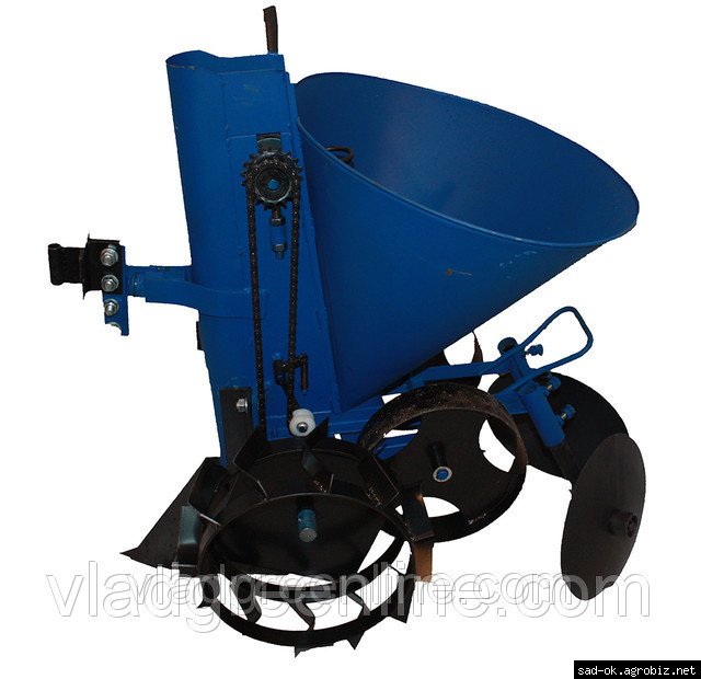 Включает в себя бункер для клубней, сошник, диски для загортания картофеля и опорно-приводные колёса.
