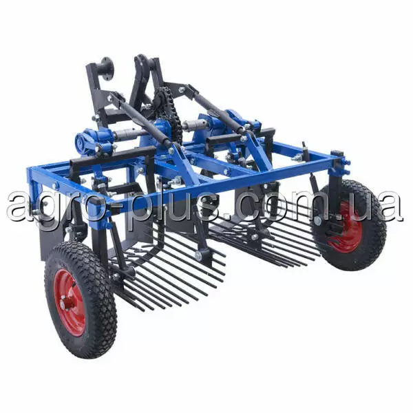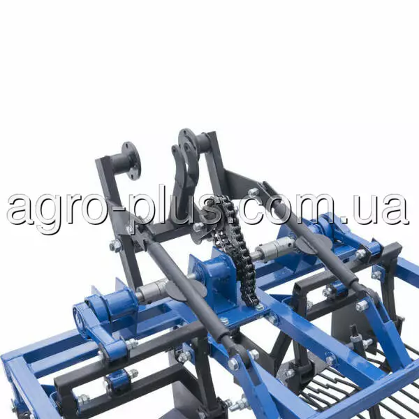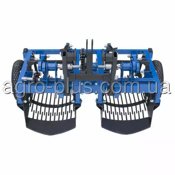 Дворядний картоплекопач КК19 приводиться в дію за допомогою ланцюгової передачі від редуктора приводу грунтофрези. Підключення здійснюється шляхом заміни штатних комплектуючих та встановлення валу і зірочки, що входять до комплекту картоплекопача.