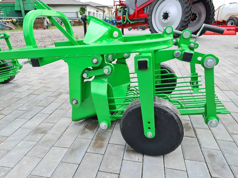 Картофелекопалка Bomet — однорядная навесная к трактору, используется для уборки картофеля на легких и средних почвах. Агрегатируется с тракторами 18-40 л.с. на трех точечную навеску и приводится в действие карданным валом 6 шлиц. Глубина копания регулируется опорными колесами.Интенсивность отсеивания можно увеличить путем регулирования наклона отсеивает элеватора.