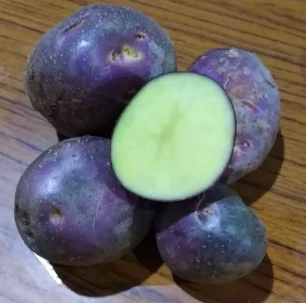 Картопля Містерія - новий сорт середньостиглого терміну дозрівання, стійкий до посухи. Придатний для вирощування в усіх областях. У кущі 18-20 фіолетових бульб. Бульби забарвлені в насичений фіолетовий колір, красиві. М'якуш жовтого кольору. Зміст крохмалю в цій картоплі знаходиться в межах 14-17%. Дуже смачна картопля.