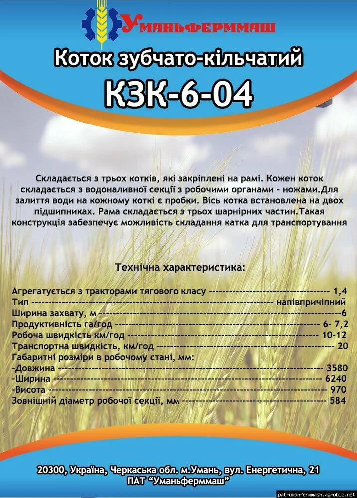 КАТОК ЗУБЧАТО-КІЛЬЧАСТИЙ КЗК-6-04