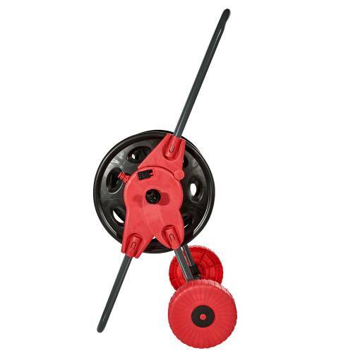 Котушка виконана у вигляді візка з великими колесами, що дозволяє легко переміщати її по вашій ділянці навіть з будь-яким рельєфом, маючи при цьому високу маневреність. Широка ручка забезпечує відмінне керування при транспортуванні, а зручна складна конструкція дозволяє компактно зберігати котушку після використання.