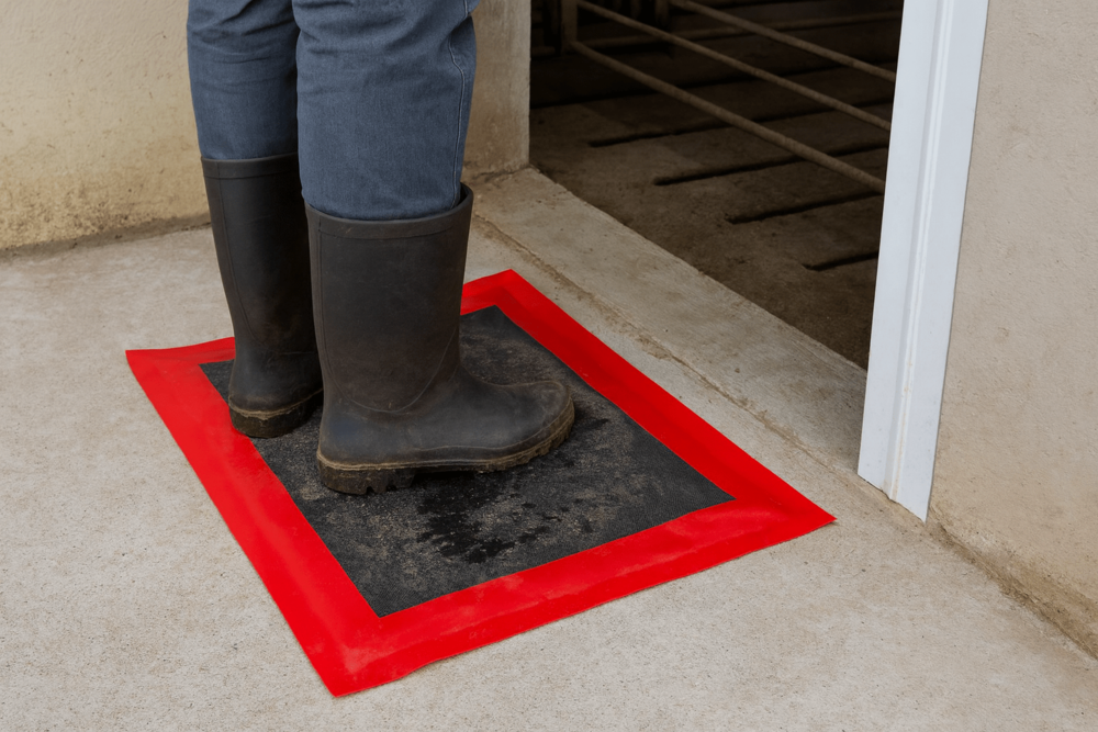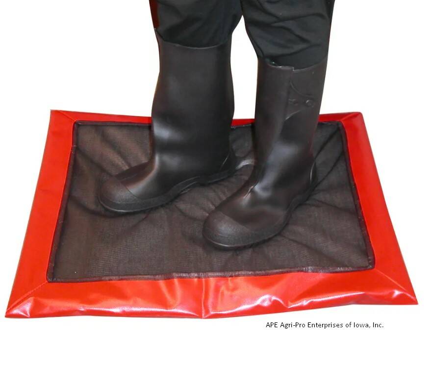 Використовуйте цей килимок, щоб забезпечити належну дезінфекцію взуття перед входом у ваше приміщення: свинарники, пташники та молочні господарства, а також на інших об'єктах для дезінфекції взуття відвідувачів.
